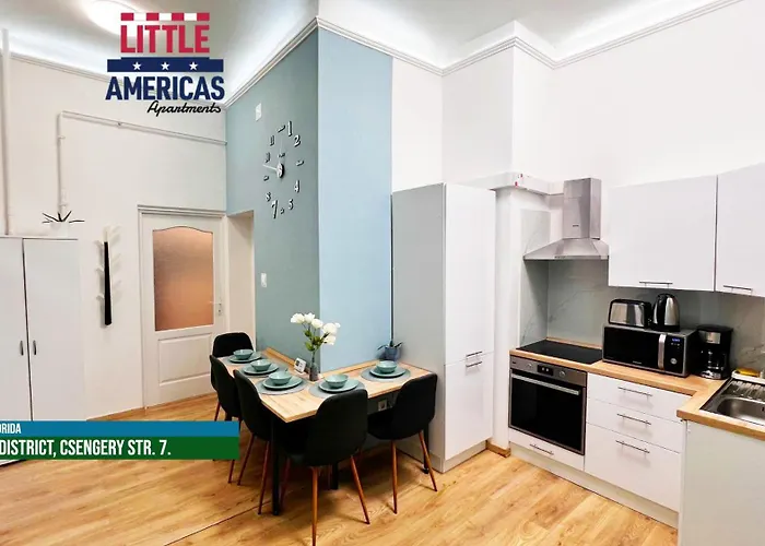 דירת Little Americas Palm Beach Apartment שוכנת במרחק של 2.1 ק"מ על דנובה וכ-2 ק"מ על כיכר הגיבורים. הדירה ממוקמת בקרבה על Europeum Shopping Center and Parking Garage, במרחק של 350 מטר על תחנת מטרו תחנת הרכבת ה בלהה לואיזה סקוור. בית קפה New York Cafe יכולה בהחלט לשמש לסעודה בפחות מ-550 מטר מהמקום.