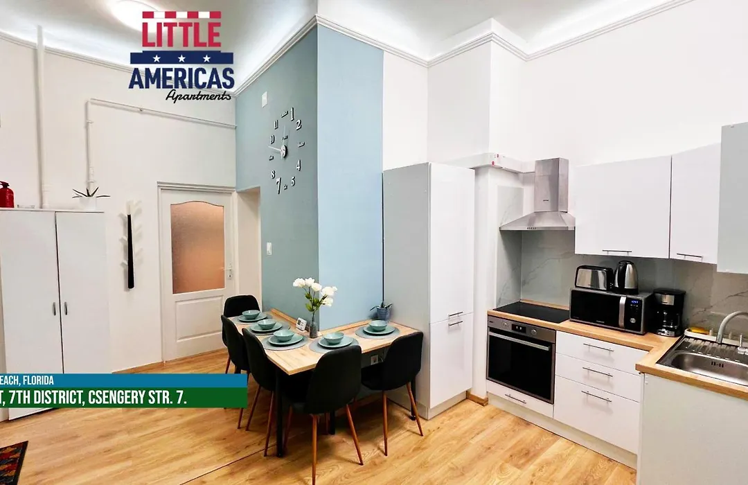 A Little Americas Palm Beach Apartment a vendégek számára biztosít konyhát mosogatógéppel és sütővel. A Blaha Lujza tér metróállomás csupán 350 m-re van a Little Americas Palm Beach Apartment területétől.